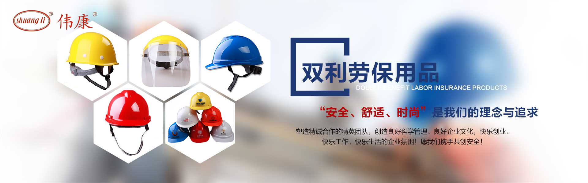 專業(yè)的安全帽生產(chǎn)廠家-鎮(zhèn)江市雙利勞保用品有限公司。雙利公司坐落于美麗富饒、景色怡人的蘇南名城——江蘇省鎮(zhèn)江市丹陽(yáng),地理位置優(yōu)越、世界第三長(zhǎng)河——長(zhǎng)江、滬寧高速、滬寧高鐵、312國(guó)道穿境而過,交通便利,環(huán)境怡人。鎮(zhèn)江市雙利勞保用品有限公司是鎮(zhèn)江市第一家創(chuàng)辦的專業(yè)生產(chǎn)安全帽的生產(chǎn)商,并申請(qǐng)擁有自己的品牌:shuangli牌和偉康牌,立足致力于安全帽研究,從原料入手研發(fā)出韌性更強(qiáng)、抗沖力更高的特點(diǎn)。公司根據(jù)實(shí)際運(yùn)行需要建立高效、務(wù)實(shí)、有序的組織機(jī)構(gòu),實(shí)現(xiàn)現(xiàn)代化公司管理。同時(shí)公司具備專業(yè)完善的生產(chǎn)設(shè)備和成熟的安全帽生產(chǎn)工藝及先進(jìn)的檢測(cè)儀器,為產(chǎn)品的質(zhì)量奠定了堅(jiān)實(shí)的基礎(chǔ),各項(xiàng)技術(shù)指標(biāo)均達(dá)到國(guó)家《GB2811-2019》《安全帽》標(biāo)準(zhǔn)。產(chǎn)品廣泛適用于建筑、林業(yè)、石油、石化、造船、港口、冶金等行業(yè)。 “安全、舒適、時(shí)尚”是我們的理念與追求,塑造精誠(chéng)合作的精英團(tuán)隊(duì),創(chuàng)造科學(xué)管理、良好的企業(yè)文化,快樂創(chuàng)業(yè)、快樂工作、快樂生活的企業(yè)氛圍!愿我們攜手共創(chuàng)安全!